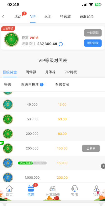 又更新了一次会员等级,看一下之前有流水的更新后有没有升级,我领了103