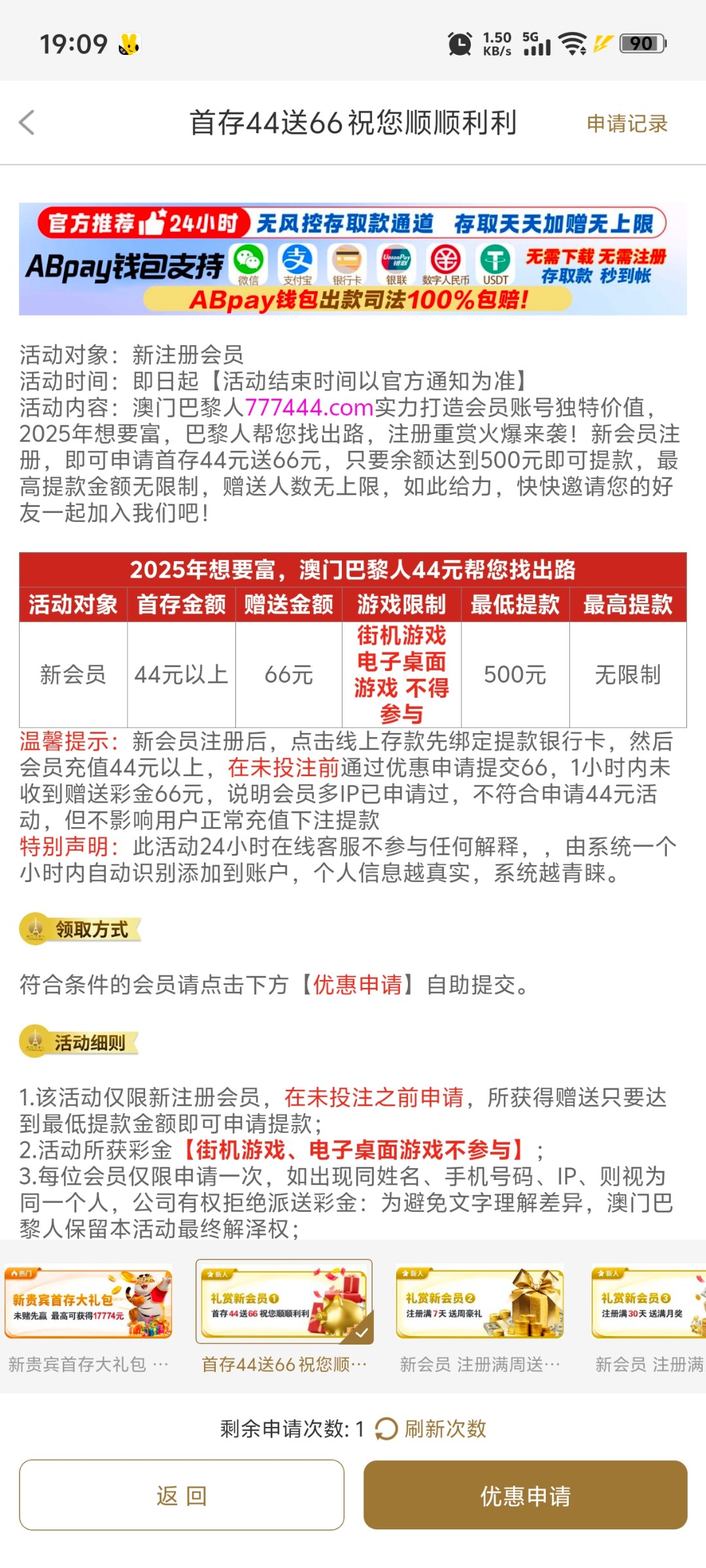 新用户以小博大44+66。具体规则看官网! 再下荣幸的下了1200