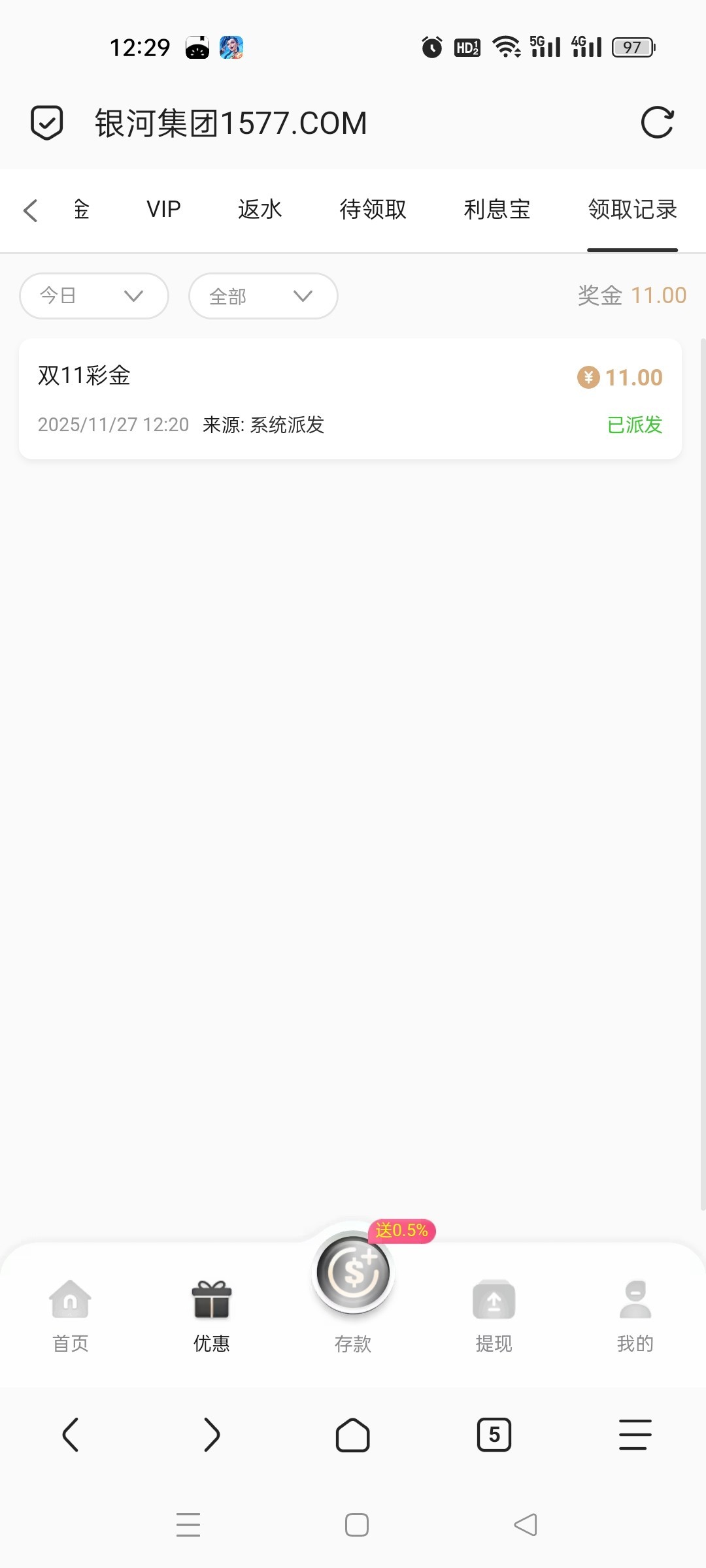 【银河1577】—✅—双11彩金