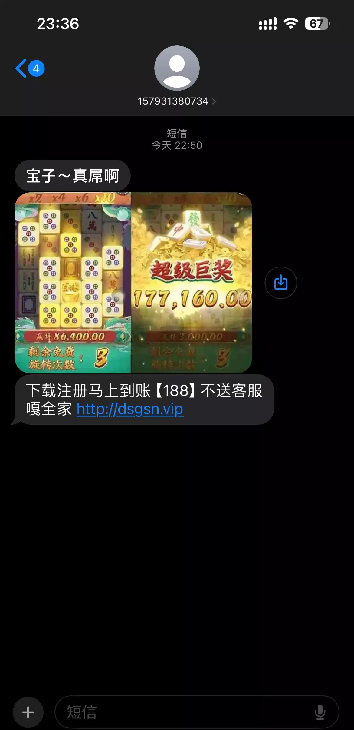 如果收到短信,下载注册自动有18万金币