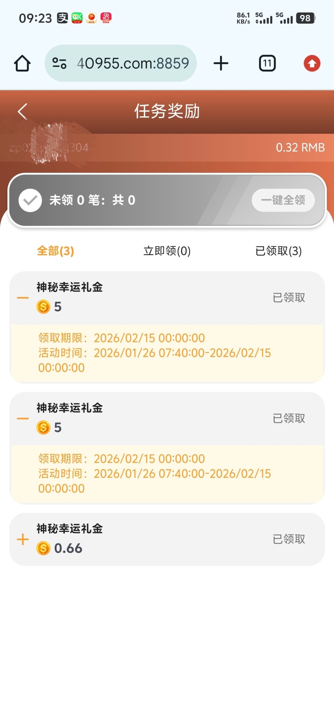 没充值 回馈了两个5